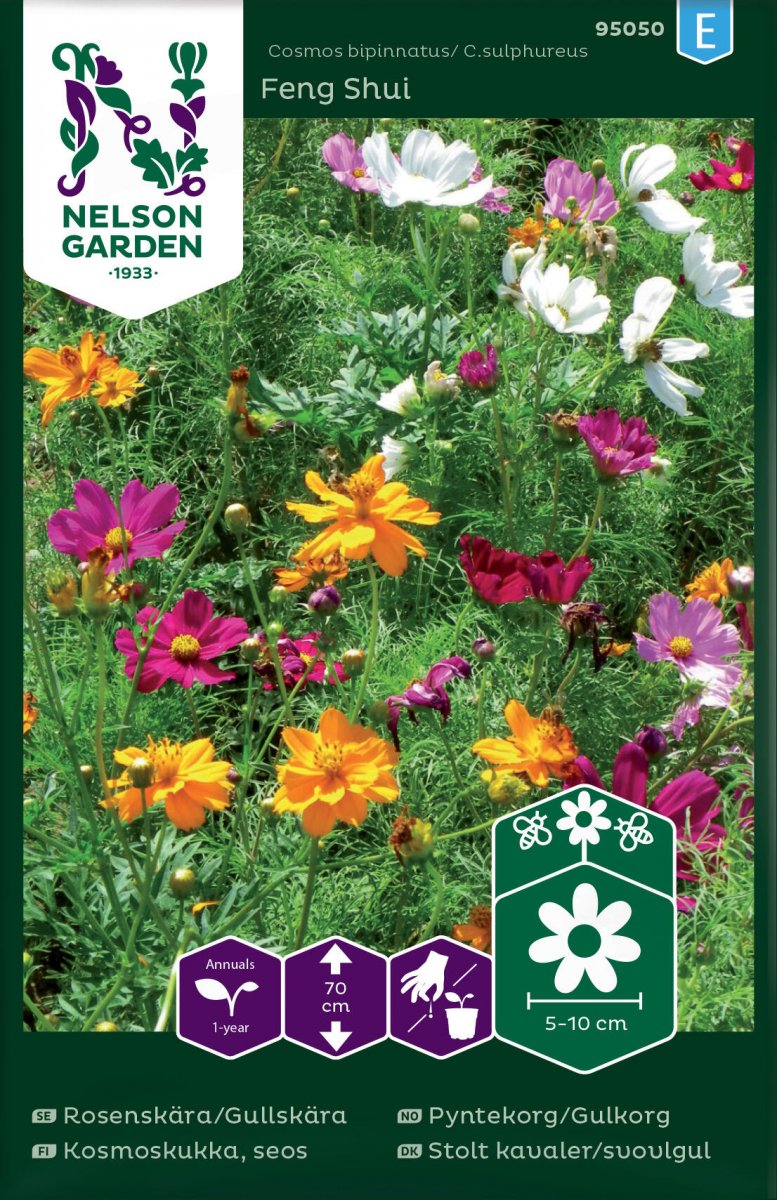 Fin mix av rosenskära och gullskära. Detta är anspråkslösa sommarblommor som förgyller rabatten och buketten. Gödsla sparsamt, annars blir det mer blad och färre blommor, och plocka bort vissna blommor efter hand.