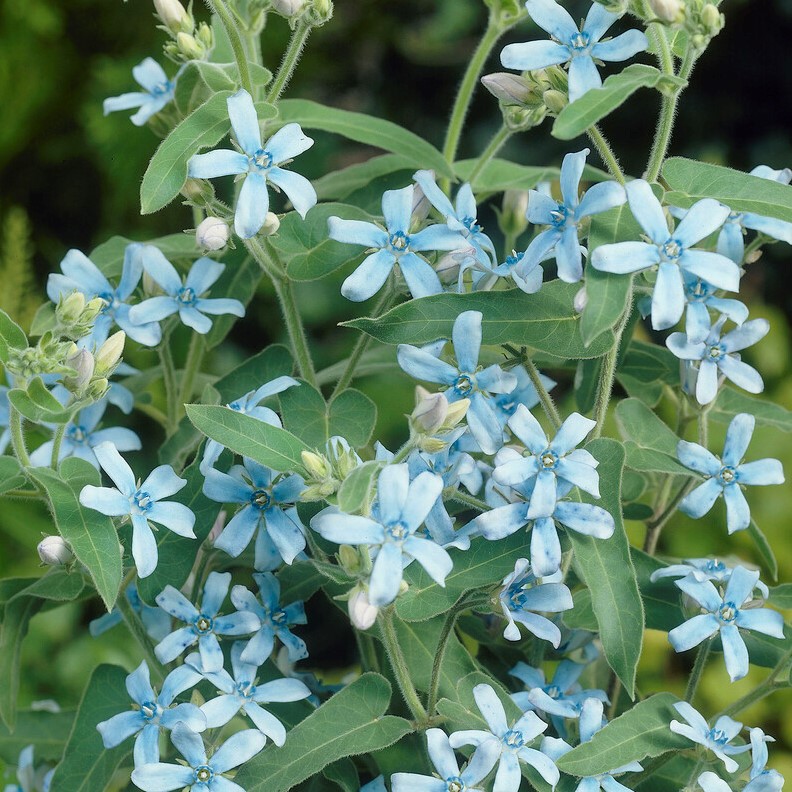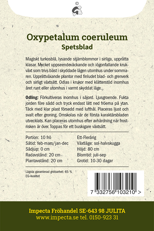 Tuote Kuvaus:Magiskt turkosblå, lysande stjärnblommor i sirliga, upprätta klasar. Odlas i krukor med klätterstöd inomhus året runt eller utomhus i varmt skyddat läge.