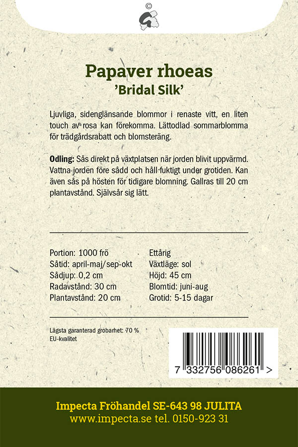 Papaver rhoeas Bridal Silk, Vallmo, Korn-, Bridal Silk