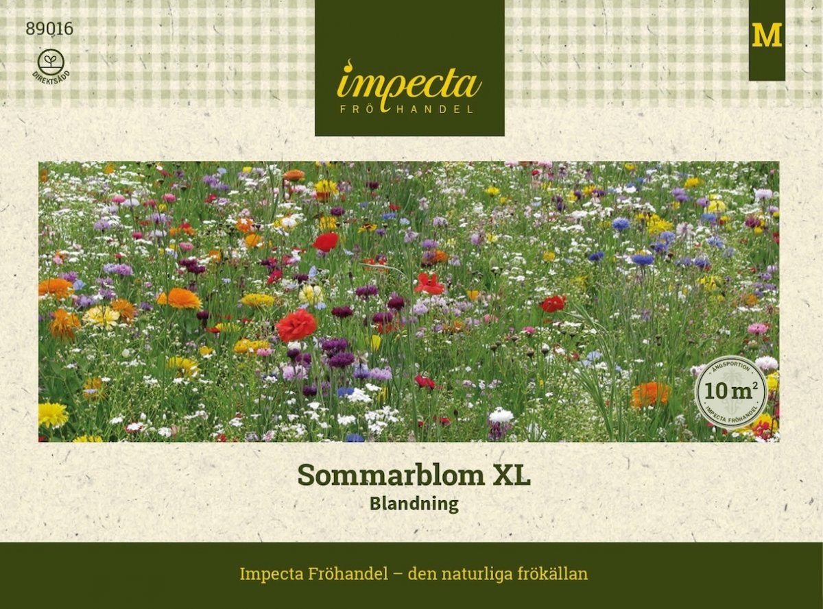 Sommarblom XL 'Blandning' en färgsprakande mix av medelhöga, ettåriga sommarblommor som börjar blomma redan i slutet av juni. Blandningen erbjuder stor variation i färger och arter, vilket skapar en levande och vacker blomsterprakt som varar hela sommaren. Perfekt för rabatter, kanter och andra planteringar där du vill tillföra glädje och variation till trädgården. Ett lättodlat och dekorativt val för en somrig och blommande oas.