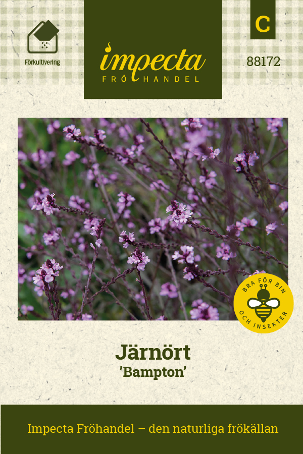 Järnört ’Bampton’ är en vacker och särpräglad halvhärdig perenn som kännetecknas av sina mörka, nästan purpurfärgade stjälkar och de små ljusrosa blommorna som svävar lätt över plantan hela sommaren. Den luftiga blomningen gör den fin som vävarväxt i rabatter och den fungerar även mycket bra i kruka. Blommorna håller oväntat bra i buketter och ger ett elegant, skirt inslag.