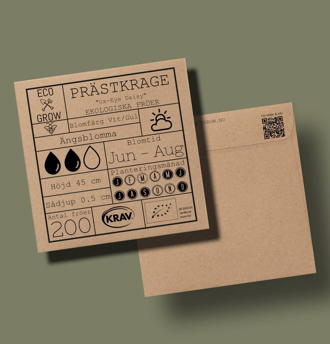 Prästkrage Ox-Eye Daisy är en flerårig, klassisk, medelhög prästkrage med vita blommor och gult öga. Uppskattas av pollinatörer.