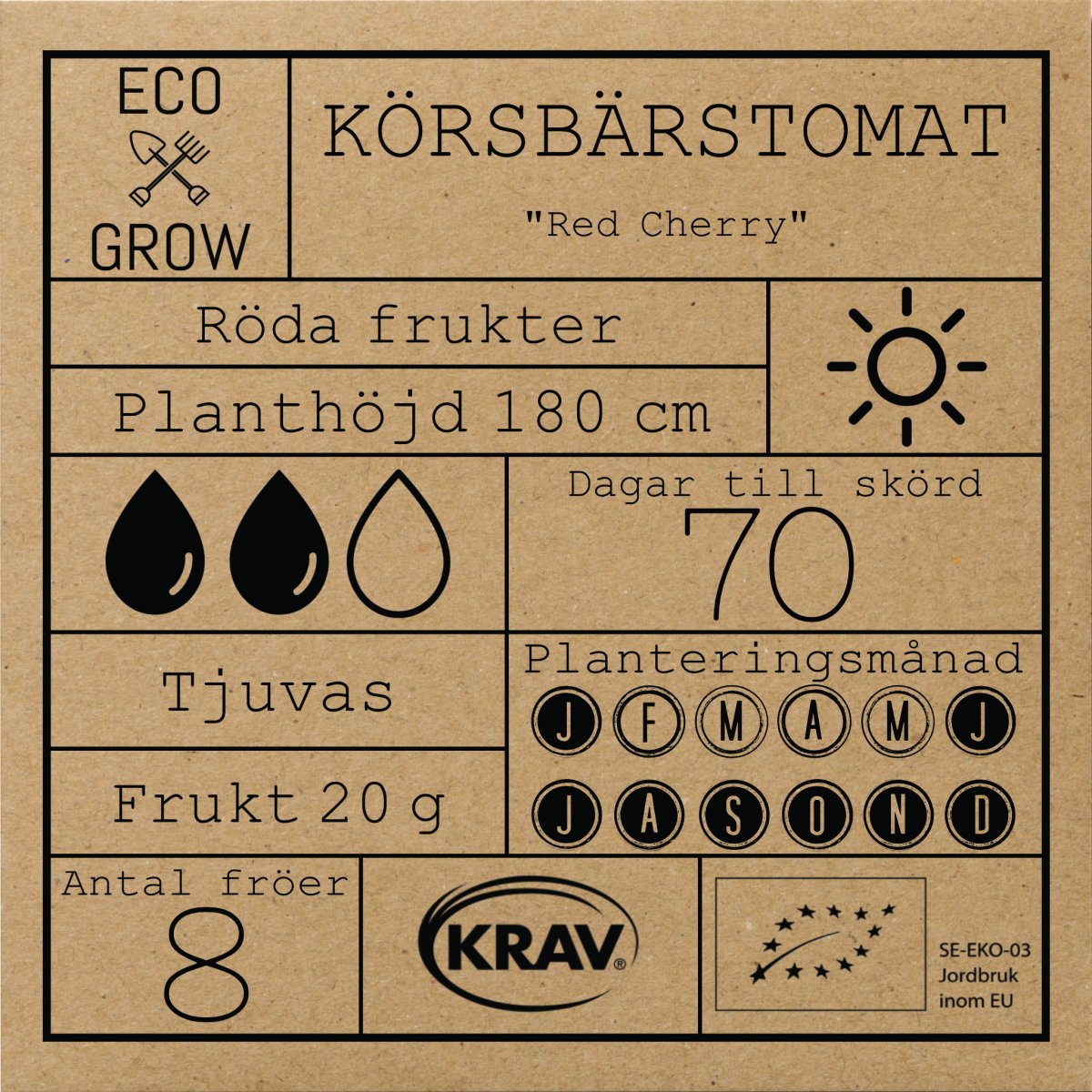 Körsbärstomat Red Cherry - är en mycket rikgivande körsbärstomat som ger söta, saftiga och röda tomater som växer i klasar. En favorit med många användningsområden!