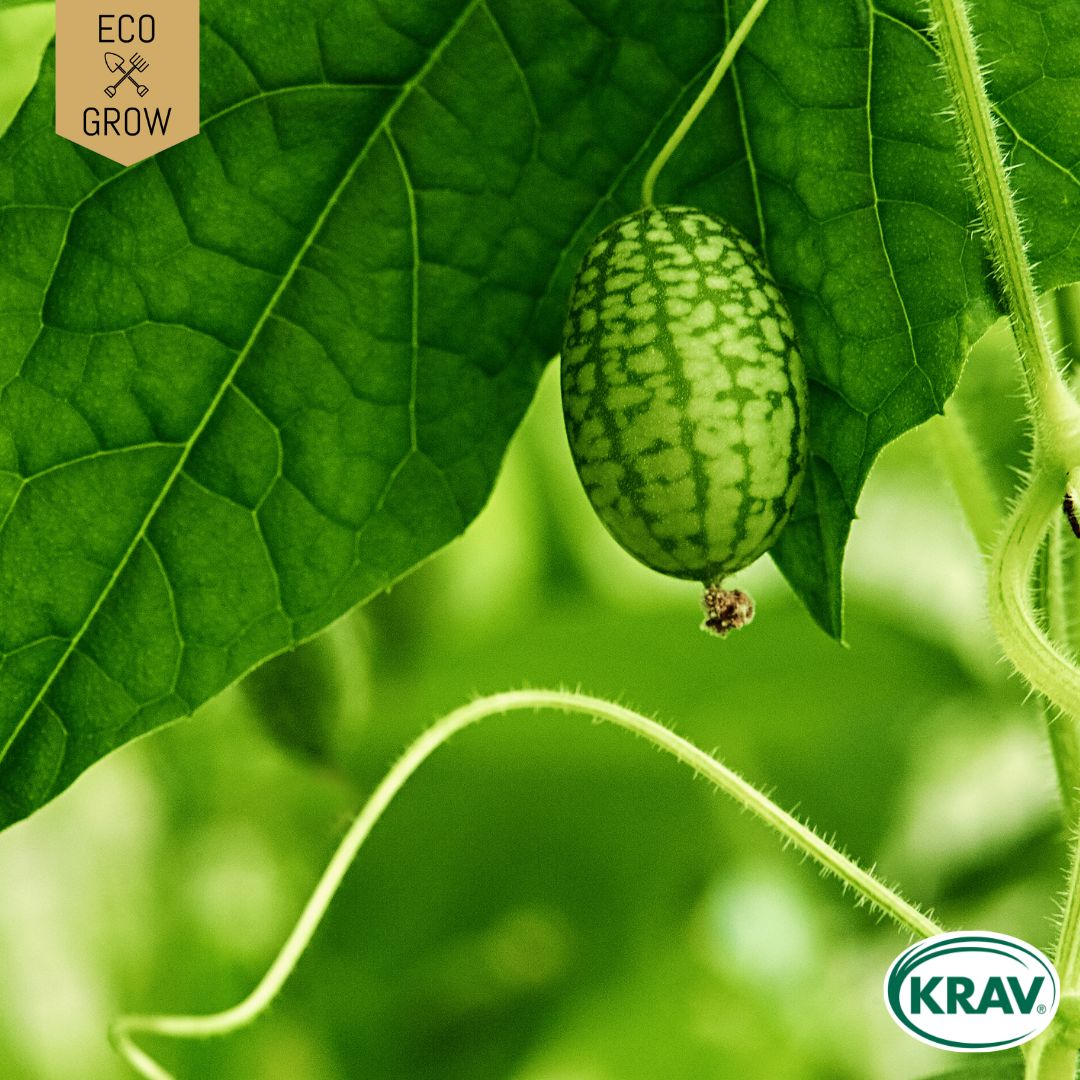 Djungelgurka Melothria Scabra - är en exotisk sydamerikansk klängväxt med stor växtkraft. Är snabbväxande och ger mängder av små ovala frukter på 3-5 cm. Frukterna har ett grönt spräckligt skal i olika nyanser och smaken är aningen syrlig. Används som snacks i sallader, salsor eller inläggningar.