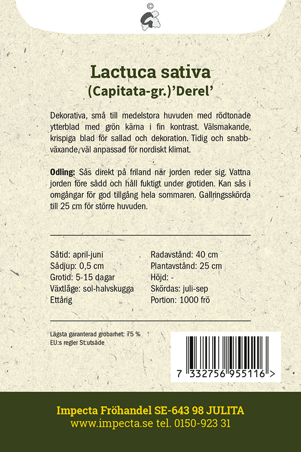 Lactuca sativa Derel, Sallat, Huvud-, Derel