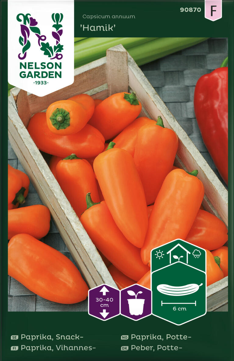 Smakrik "babypaprika" med små orange frukter som är nästintill kärnfria. De söta frukterna är utsökta att äta direkt från de egna odlingarna. Odla på skyddat och varmt läge, t ex på altan, balkong eller växthus. Duscha plantan ofta för att förhindra skadedjursangrepp.