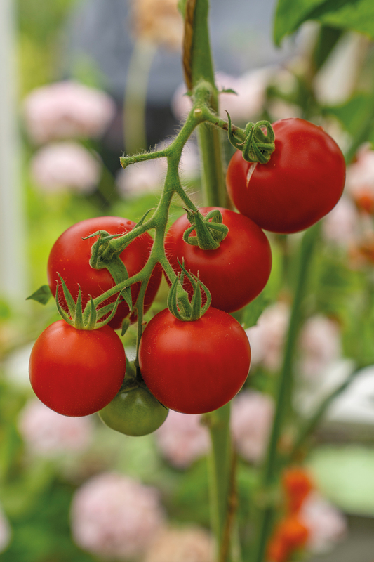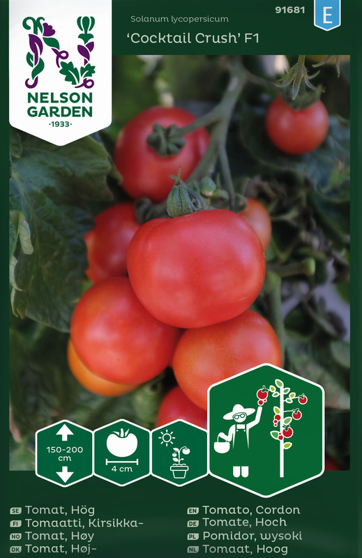 Tomat 'Cocktail Crush F1' (Solanum lycopersicum 'Cocktail Crush F1') är en smakfull och högavkastande cocktailtomat som imponerar med sina söta, saftiga och intensivt röda frukter. Tomaterna är medelstora, jämna i formen och har ett delikat skal som gör dem perfekta för sallader, tilltugg och direkt plockning från plantan. 'Cocktail Crush F1' är en tidig sort med stark motståndskraft mot vanliga tomatsjukdomar, vilket säkerställer en lång och pålitlig skördesäsong. Plantan har ett kraftigt och upprätt växtsätt, vilket kräver stöd för att bära de många fruktklasarna. För bästa resultat, odla på en solig och skyddad plats, vattna regelbundet och tillför näring under hela växtperioden. Med sin läckra smak, rikliga avkastning och hållbarhet är 'Cocktail Crush F1' ett utmärkt val för både hobbyodlare och trädgårdsentusiaster som vill skörda förstklassiga tomater hela sommaren.