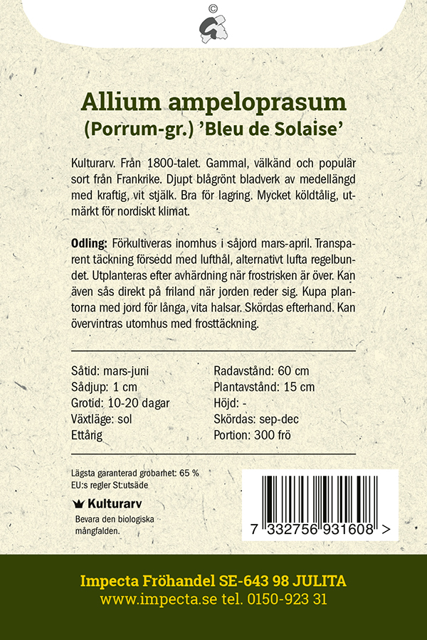 Allium ampeloprasum (Porrum-gr.) Bleu de Solaise, Purjolök Bleu de Solaise