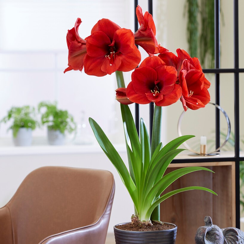 Dessa Ferrariröda blommor kommer lysa upp ditt hem i jul! En lite lägre stort vilket ger stadigare stjälkar.
