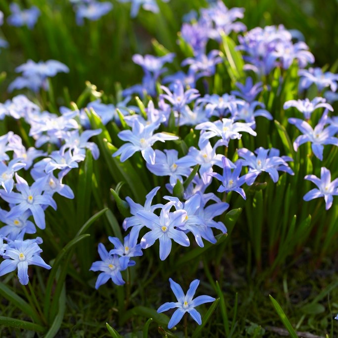 Stor vårstjärna med sina vackara blå blommor strålar verkligen som en stjärna i vårsolen.