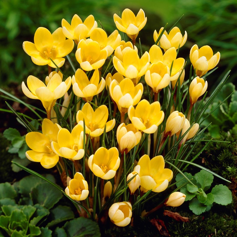 Härligt smörgul krokus som tittar upp tidigt på våren och piggar upp.Plantera gärna i grupper.