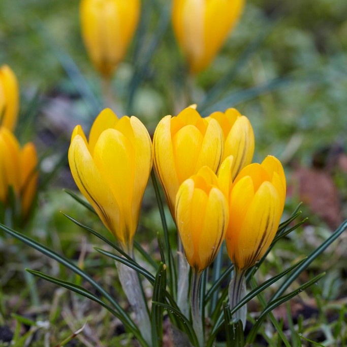 Storpack på vårkrokus i lysande gult. Vacker att plantera i grupper om flera under buskar och träd eller intill husväggar där vårsolen lyser. Trivs i sol till halvskugga och blir ca 10cm hög.