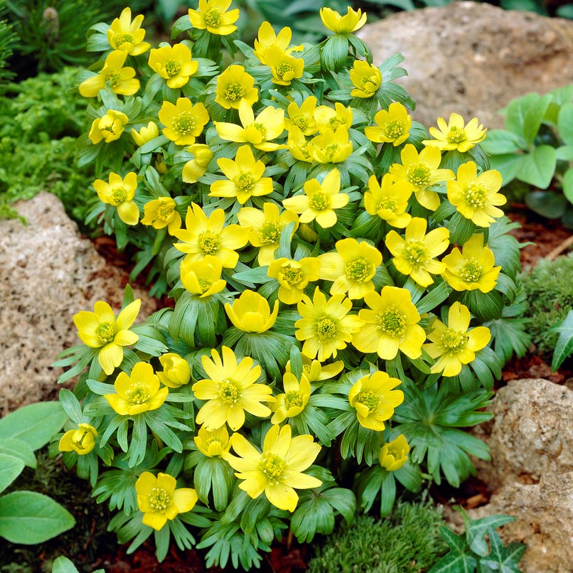 Vackra vita blommor över ett fint bladverk.