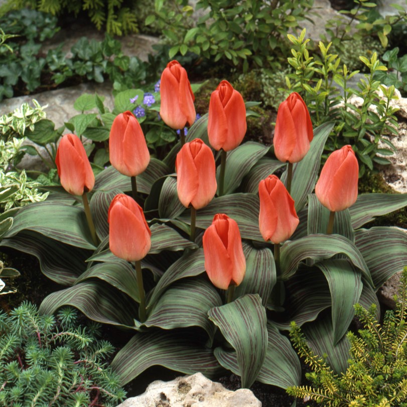 Rosaröda blommor och strimRosaröda blommor och strimmiga blad.