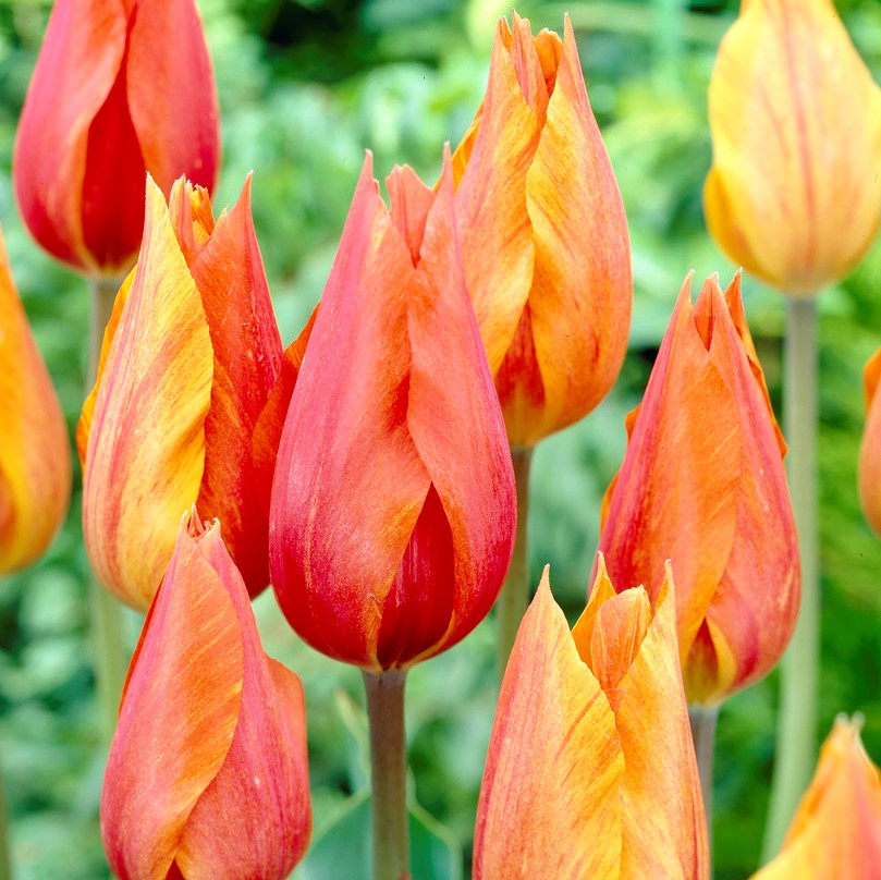 Vackert gul-orange, enkelblommande som är bägarformade i blomman och skiftar i färgen beroendes på ålder på blomman.