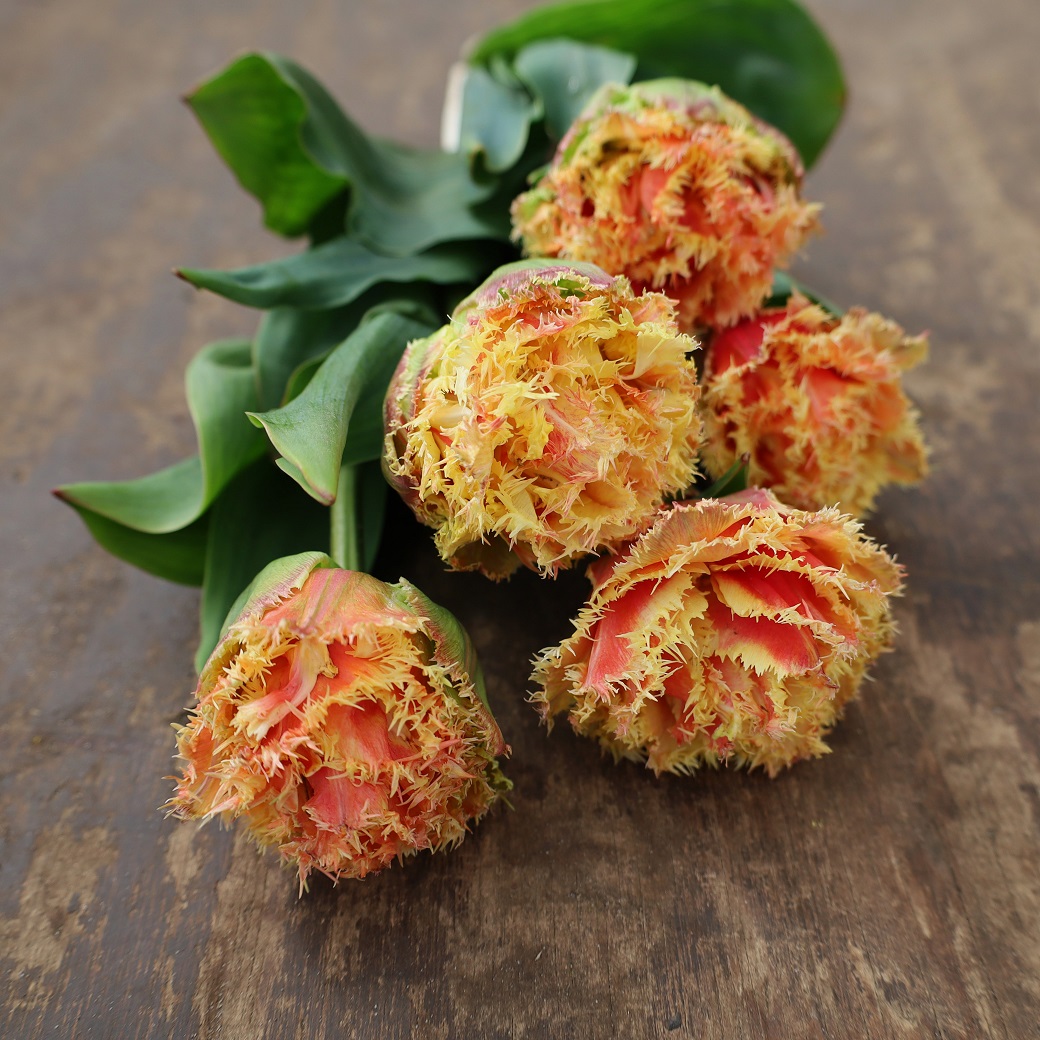 En mix där den mer klassika tulpanformen i Passio Sweet möter det lite mer vågade i Brisbane med sina fransiga blommor och skiftande toner av gult, orange och aprikosa toner. En vågad mix med aprikosa toner.