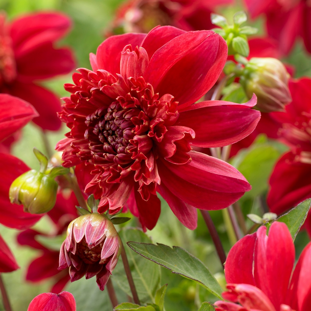 Inca är en vacker röd anemondahlia. Mitten är en aningen mörkare än kronbladen.