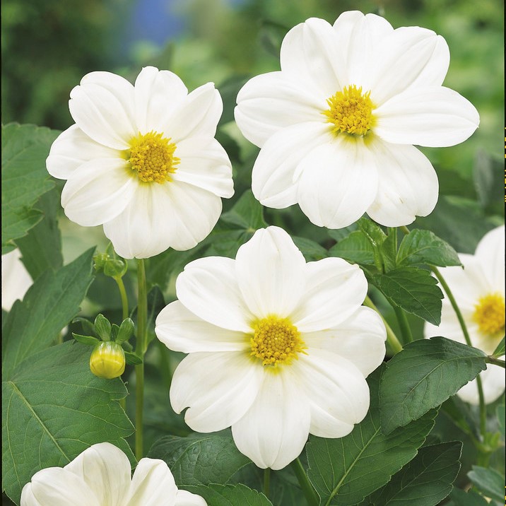 En blomvillig sort som får enkla snövita kronblad kring en gul mitt. Passar såväl till rabatten som en urna.