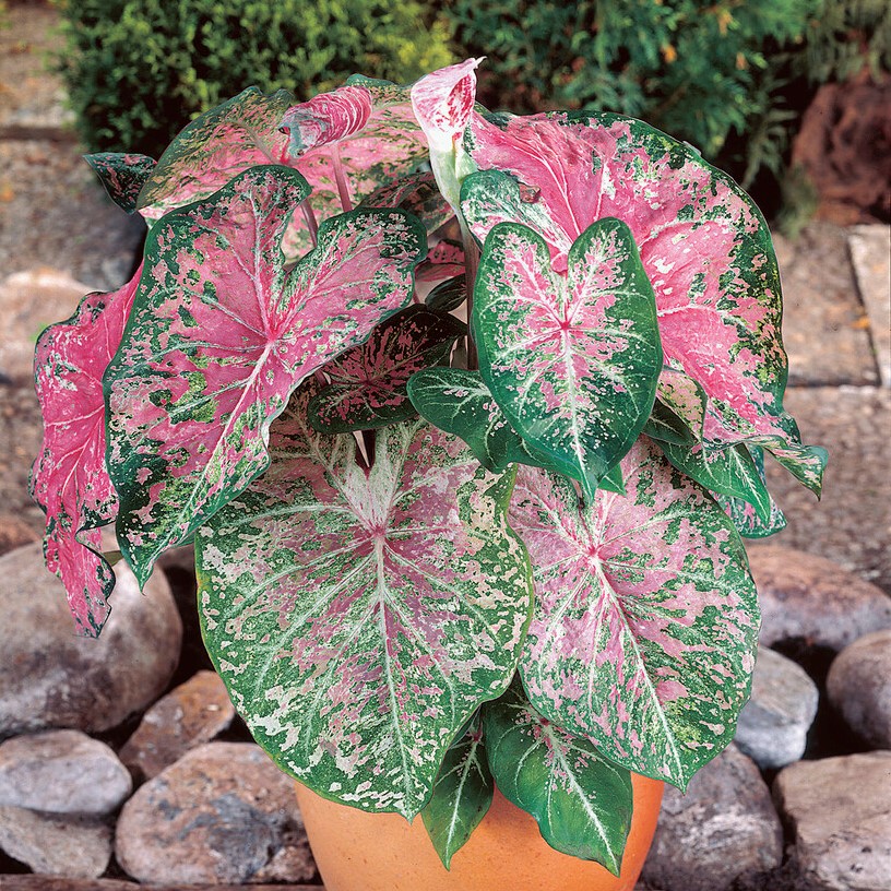 Stora blad i rosa och grön.