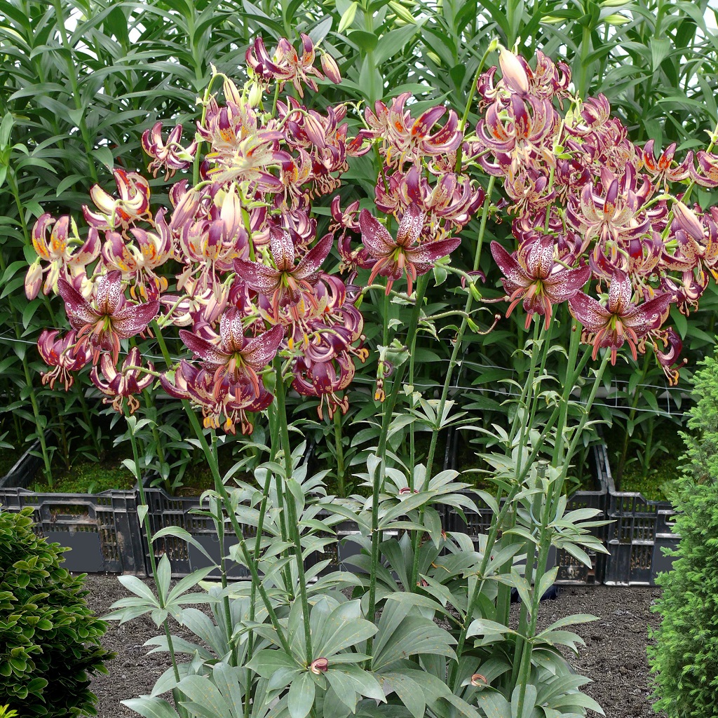Mörkrosa blommor med vita fläckar och svag doft. En underbar lilja!