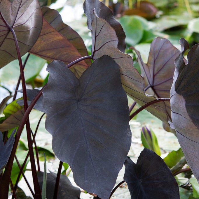 Med sina stora svarta blad är detta verkligen en imponerande växt! Den är bäst lämpad som krukväxt i Sverige eftersom att den behöver tas in under vintern. Växten bildar knölar som är ätbara och kan liknas vid potatis.